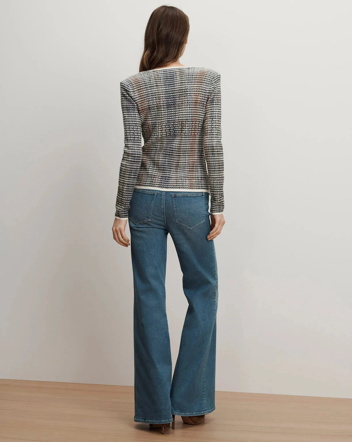 Soft tailoring. perfected. The Nadialine is crafted from a luxe stretch knit with a tweed-like finish—offering the structure of a jacket with the ease of a cardigan. Cut for a slim. waist-defining fit. it features a V-neckline. split hem. and removable shoulder pads to further enhance shape. Silver statement buttons complete the look. Wear solo with denim. or layer over a turtleneck and trousers.